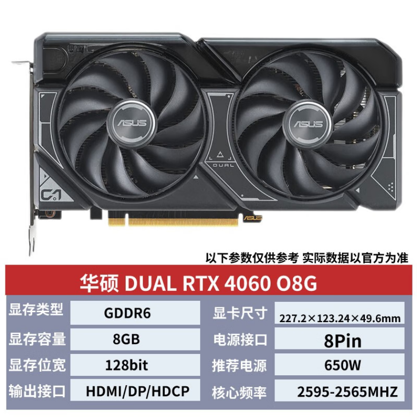 华硕(ASUS)DUAL-RTX4060-O8G 电竞游戏显卡 华硕显卡批发