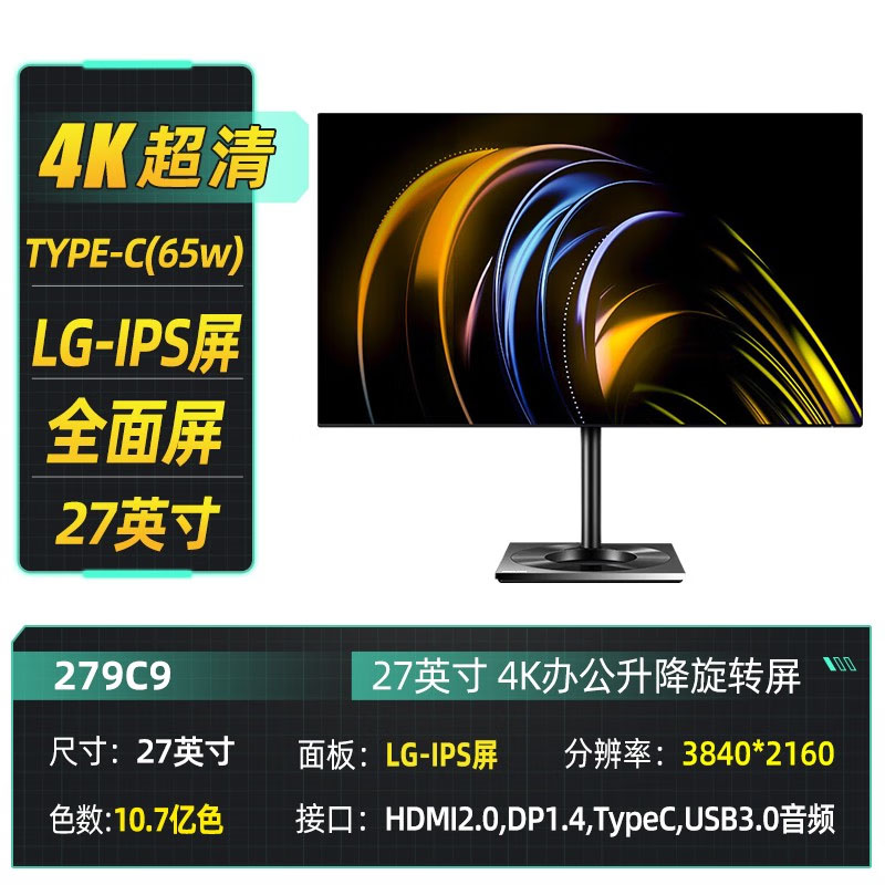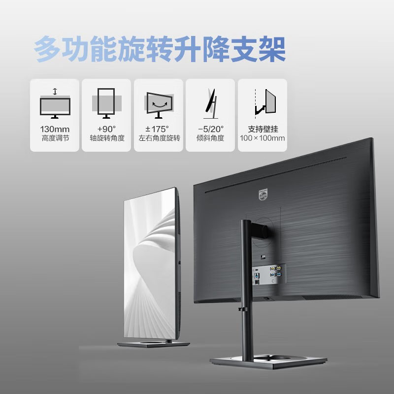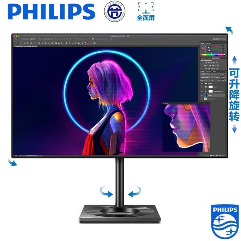 飞利浦(PHILIPS) 279C9 27英寸4K显示器LGD-IPS悬浮全面屏Type-C接口 升降旋转专业级设计办公显示屏
