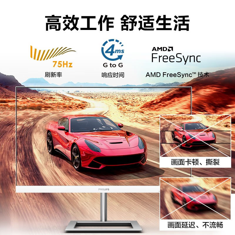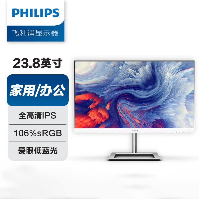 飞利浦(PHILIPS)241E1W 23.8寸 白色办公显示器 全高清 75Hz 低蓝光不闪屏 窄边框 支持壁挂 电脑显示屏 传上去批发