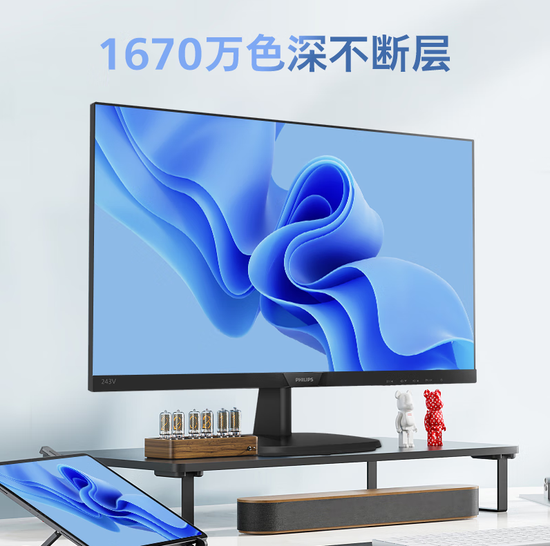 飞利浦 243V7QDSB 23.8英寸显示器 LGD-IPS FHD 75Hz TUV认证低蓝光 VGA/DVI/HDMI