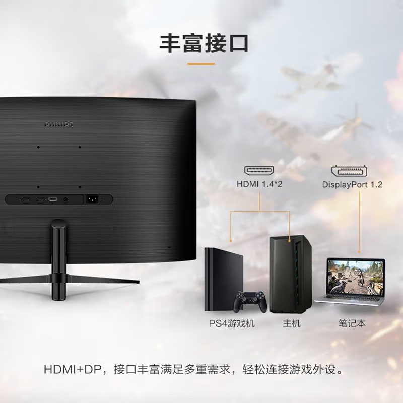 飞利浦(PHILIPS)325M8C 31.5英寸 2K 144Hz 曲面游戏电竞显示器 电脑高刷液晶显示屏 显示器批发