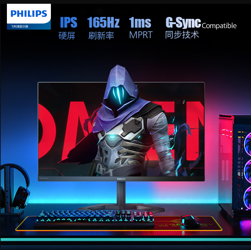 飞利浦27M1N3200Z 27英寸 165Hz IPS屏 1ms 旋转升降 99.9%sRGB 电竞显示器 游戏娱乐显示屏
