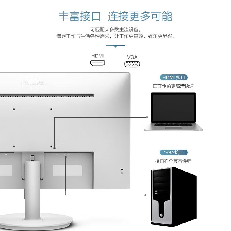 飞利浦(PHILIPS)271V8W 27英寸 IPS屏 广视角 Adaptive Sync技术 低蓝光不闪屏 75Hz刷新