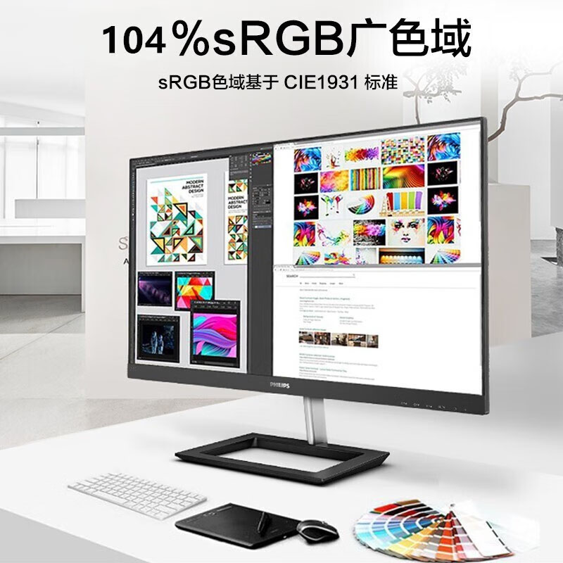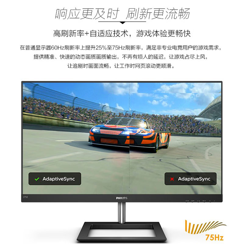 飞利浦(PHILIPS)275E1 27英寸2K电脑显示器IPS技术广色域75HZ商务办公学习爱眼低蓝光不闪屏微边框显示屏