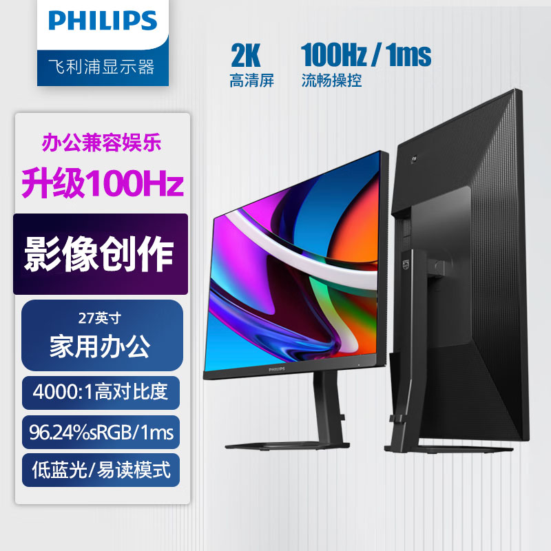 飞利浦(PHILIPS)27E1N5500LB 27英寸 2K 100Hz 低蓝光 旋转升降 电竞游戏 办公显示器