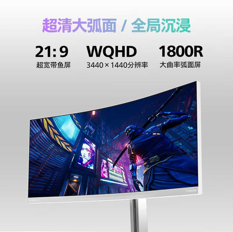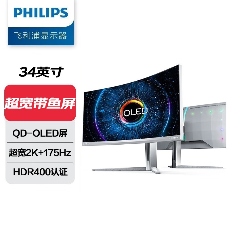 飞利浦34M2C8600 34英寸 QD-OLED 超宽2K曲面带鱼屏 175Hz 0.03ms HDR400 电竞显示器
