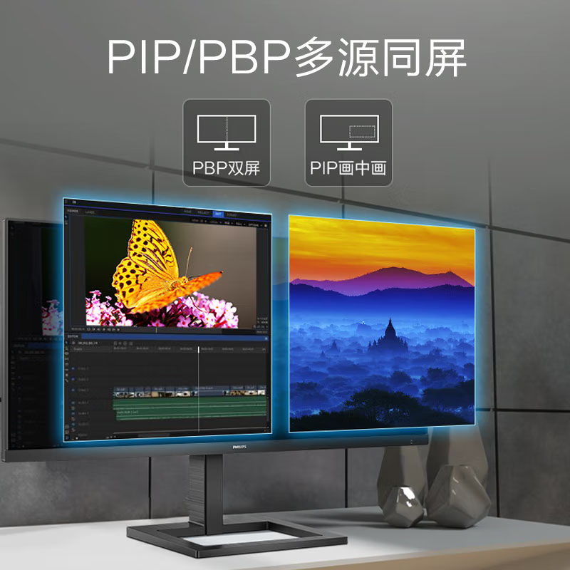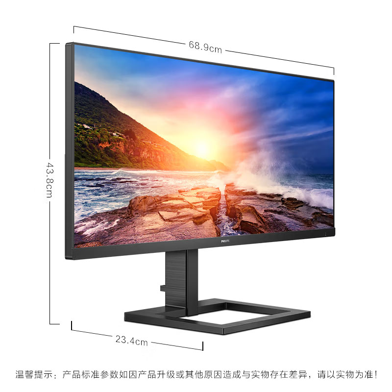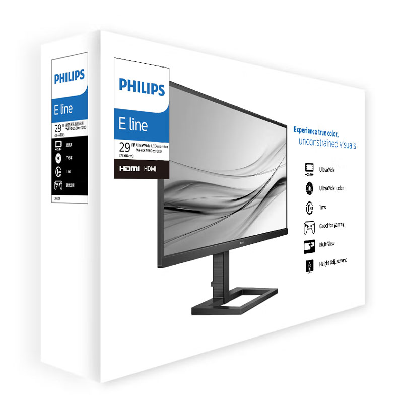 飞利浦(PHILIPS)292E2E 29英寸 2K 21:9 IPS超宽带鱼屏 75Hz智能分屏 内置音箱 升降支架显示屏