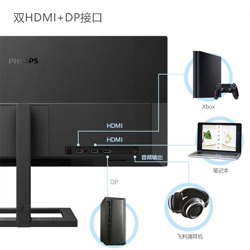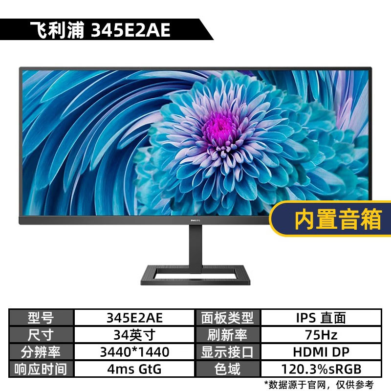 飞利浦(PHILIPS)345E2AE 34英寸 WFHD IPS带鱼屏 75Hz 智能分屏升降 电竞显示器