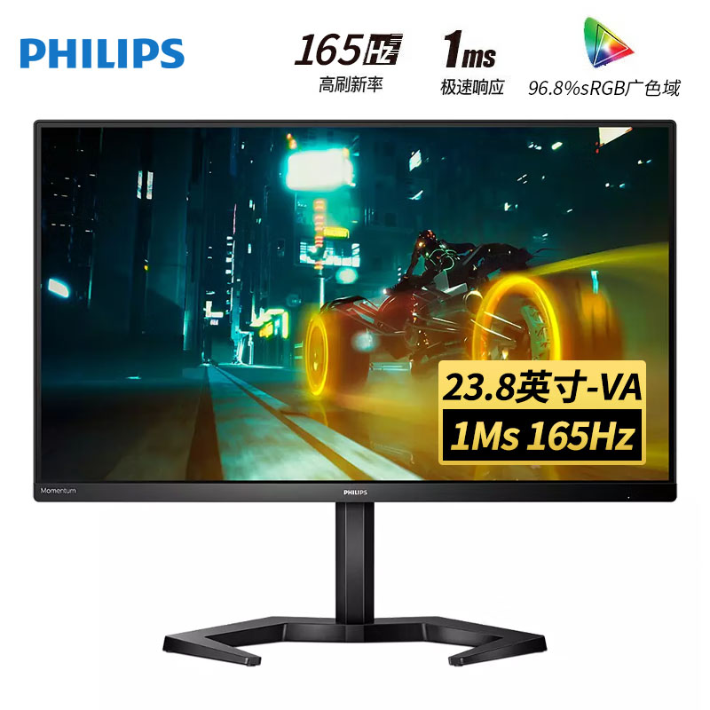 飞利浦(PHILIPS)24M1N3200VL 23.8寸 165Hz 1ms 全高清 96.8%sRGB 升降旋转电竞显示器