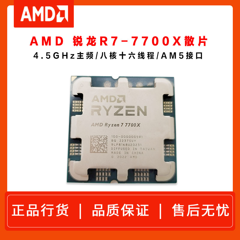 AMD 锐龙7 7700X 处理器 散片(r7) 5nm 8核16线程 4.5GHz 105W AM5接口