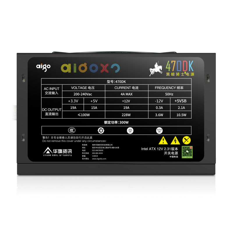 爱国者(aigo)470DK黑暗骑士(额定300W)DK系列台式电脑电源(主动式PFC/12CM风扇/智能温控/支持背线)