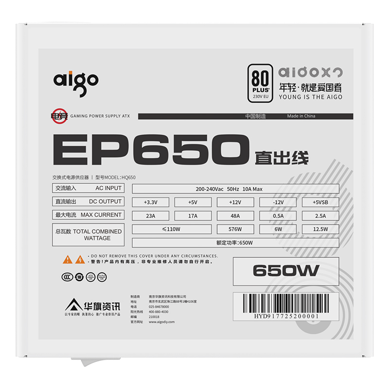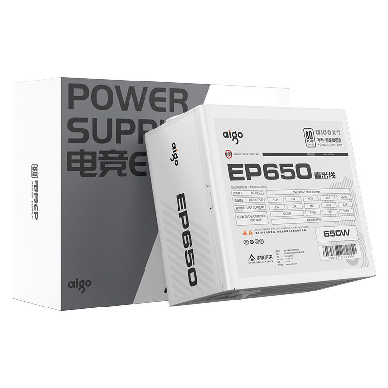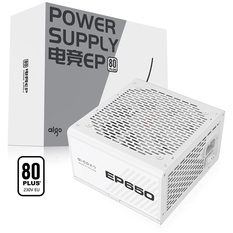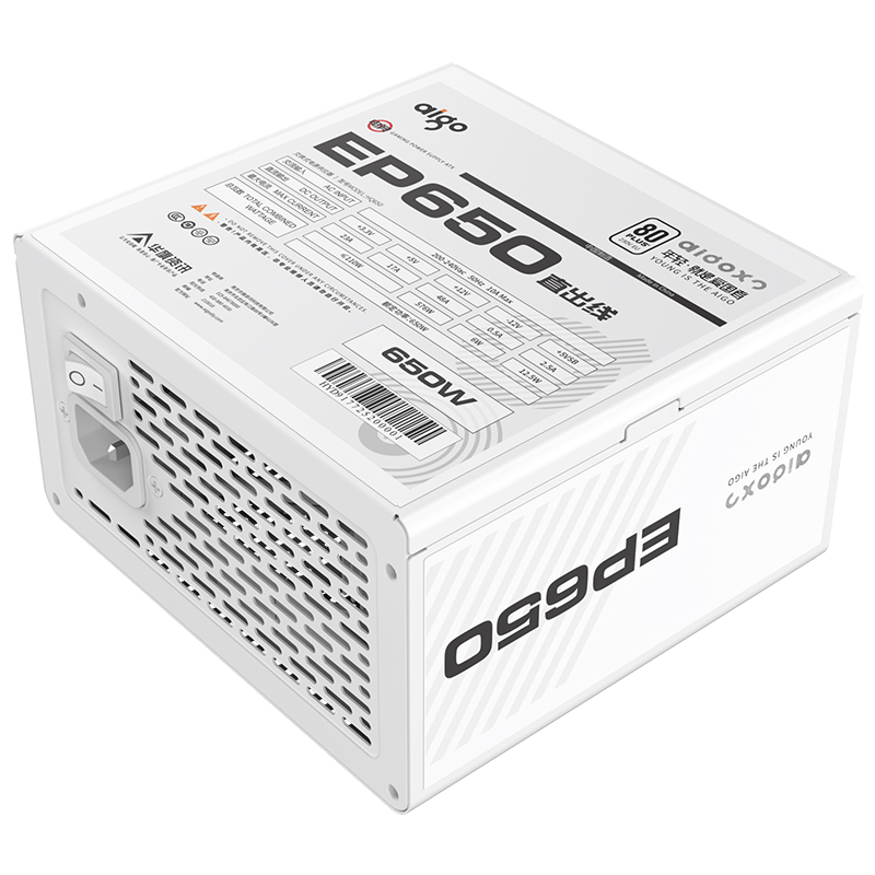 爱国者(aigo) EP650 额定650W 白色 机箱电脑电源(80Plus白牌/主动式PFC/支持背线/大单路12V)