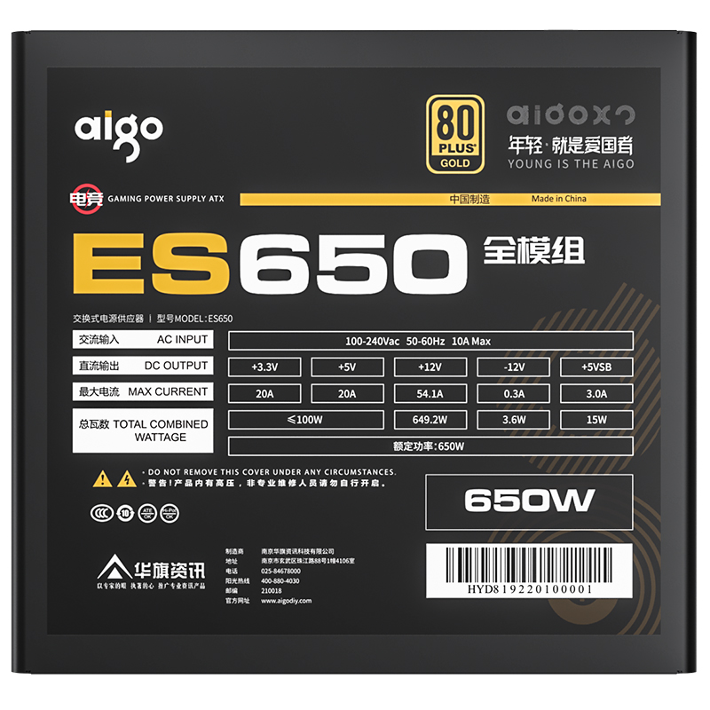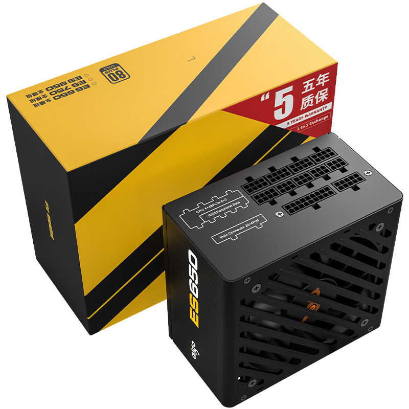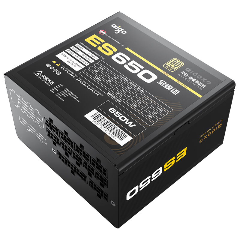 爱国者(aigo)电竞ES650全模组电脑电源 额定650W (80Plus金牌认证/双8PIN供电/LLC谐振/大单路12V)