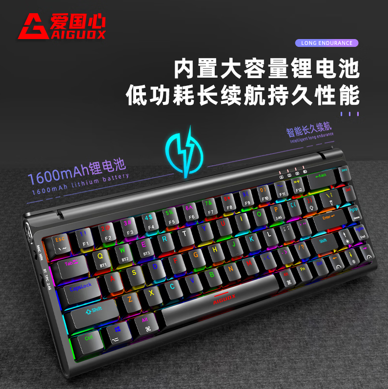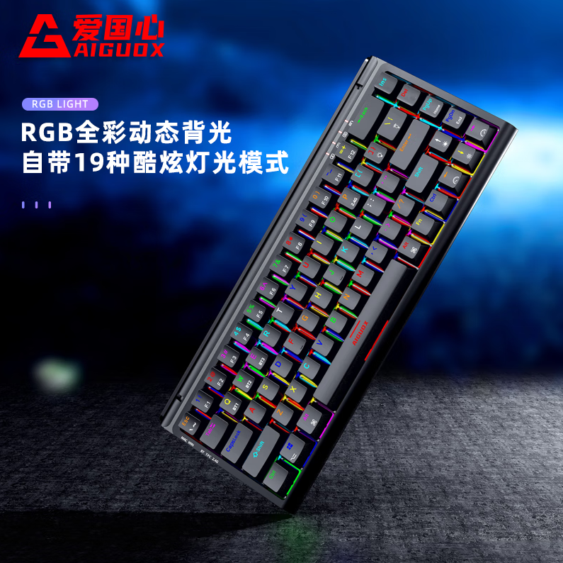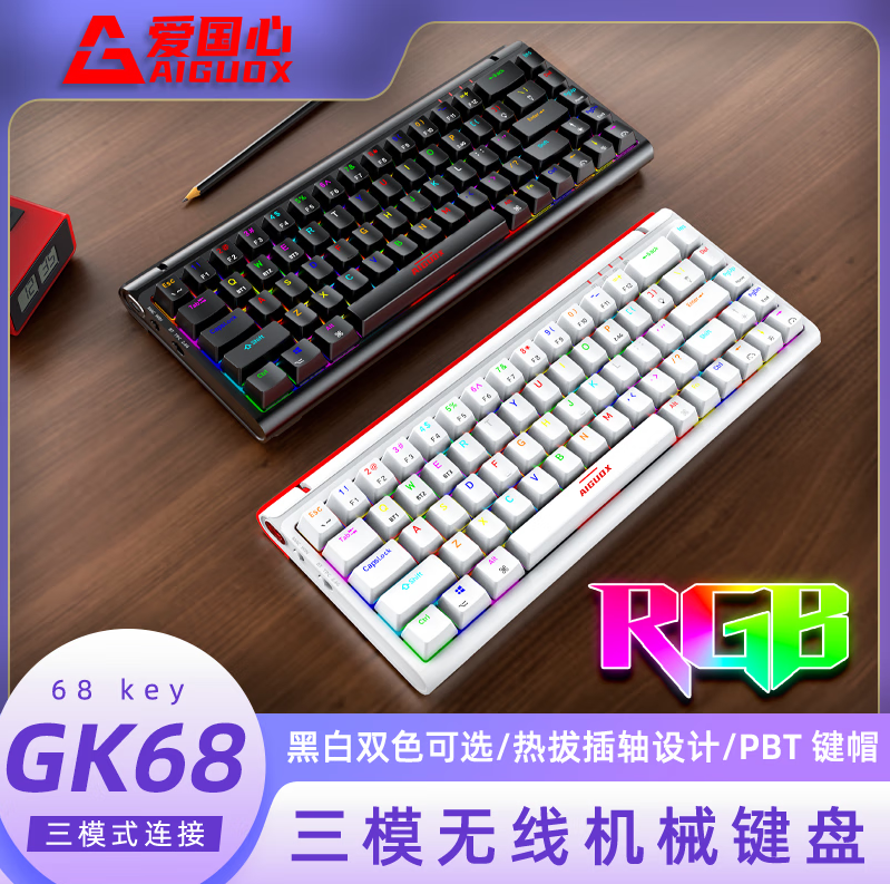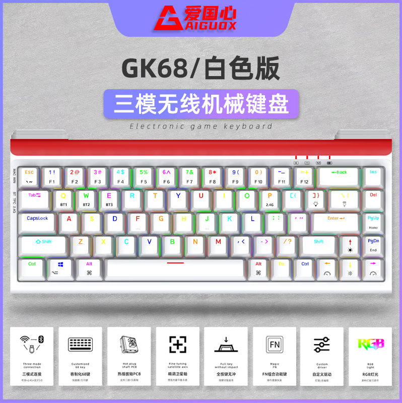 爱国心 GK68 白色青轴 有线无线三模 热插拔2.4G蓝牙机械键盘 客制化键盘热插拔轴体68键位
