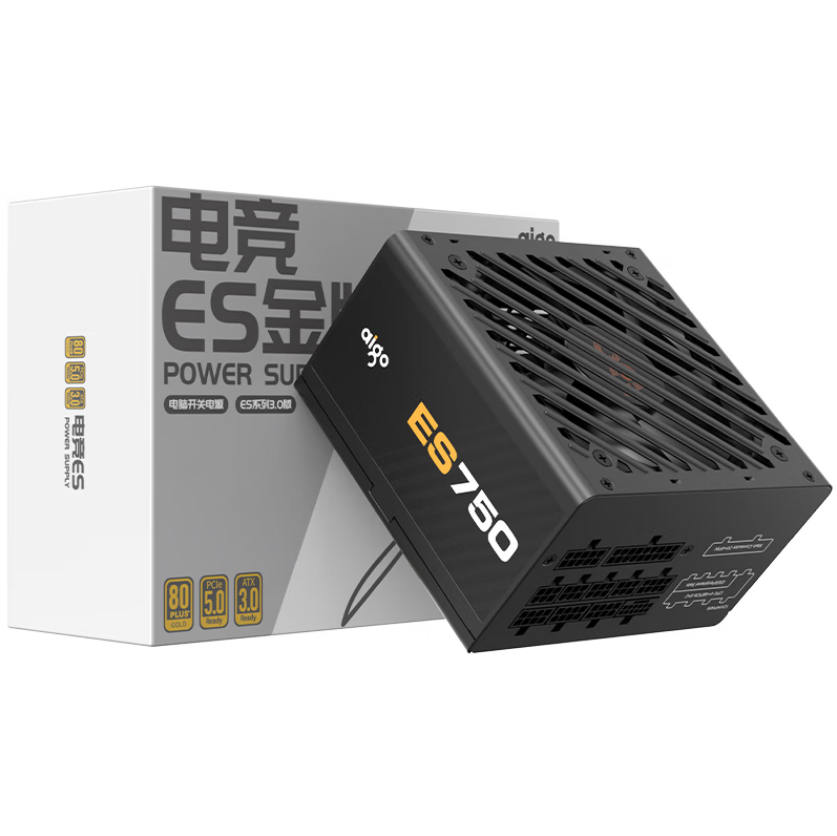 爱国者(aigo)ES750W ATX3.0 台式电脑主机箱电源(原生PCIE5.0/12VHPWR/80plus金牌/全模组设计/40系显卡)