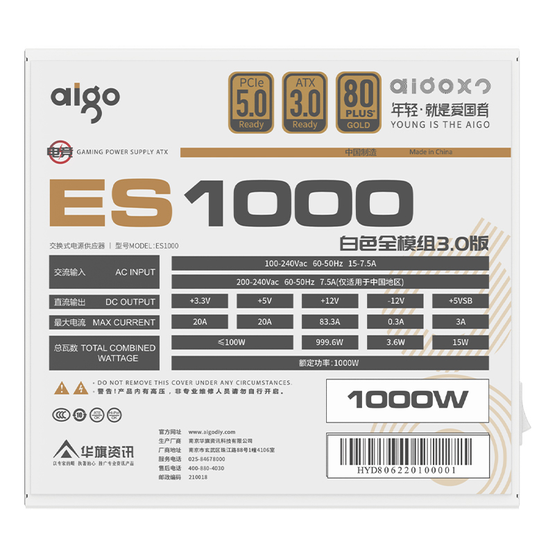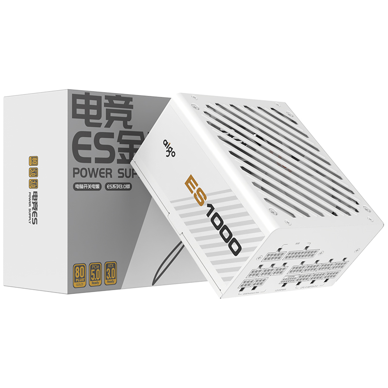 爱国者(aigo)ES1000W白色 ATX3.0金牌全模组电源(原生PCIE5.0支持4090/全电压/台式游戏电脑主机箱电源)