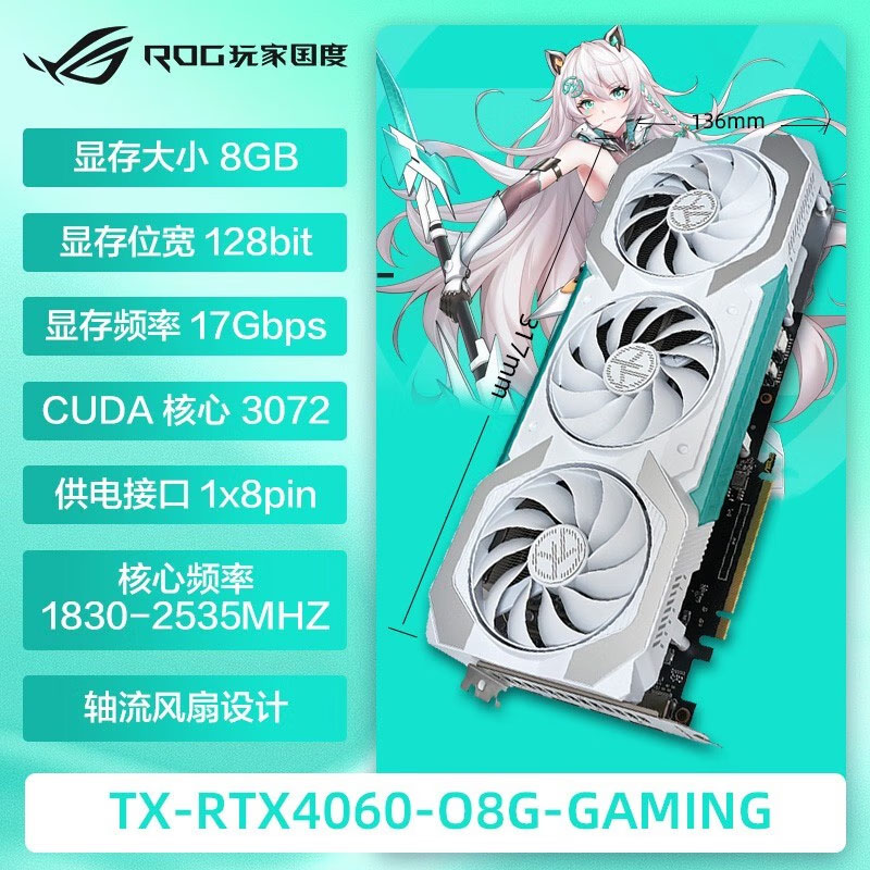 华硕(ASUS)TX RTX4060 O8G GAMING 天选系列白色电竞游戏独立显卡