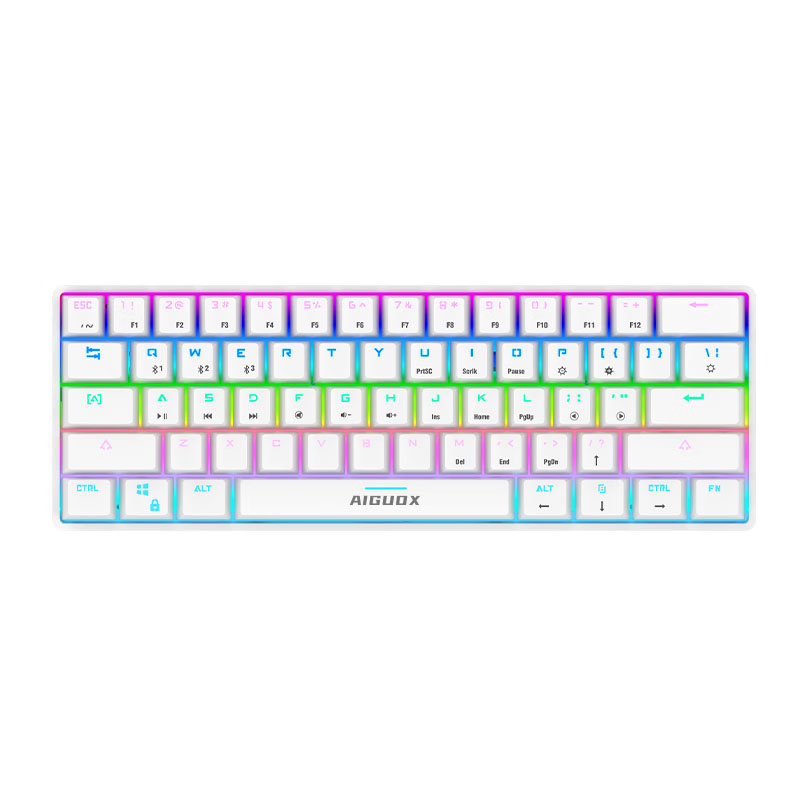 爱国心 GK806 有线无线三模2.4G蓝牙机械键盘 61键热插拔轴体 RGB幻彩灯光 白色青轴