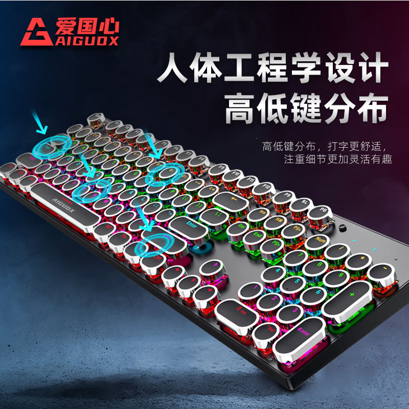爱国心 GT802 青轴 机械键盘鼠标黑色套装 电镀朋克键帽炫酷灯效 电脑电竞游戏机械键盘