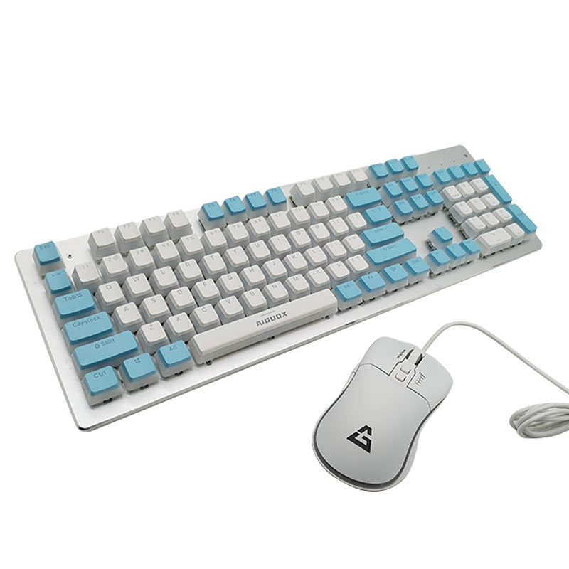 爱国心 GT-803(蓝白布丁) 青轴 竞技游戏机械键鼠套件 电脑电竞游戏机械键盘鼠标