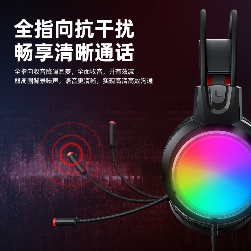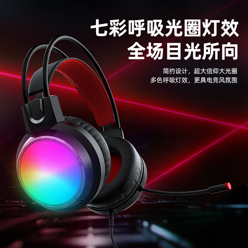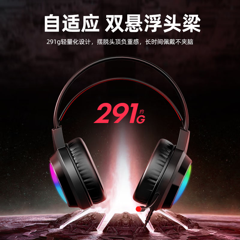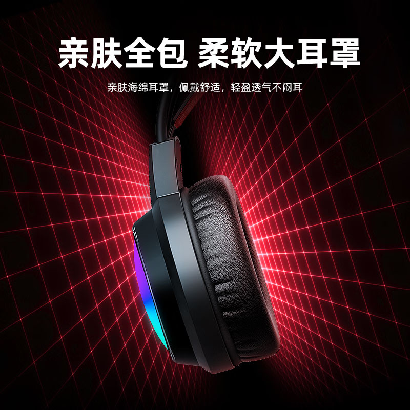 爱国心 GR600 头戴式电竞游戏耳机电脑有线耳机 电镀发光耳机 USB插头虚拟7.1音效