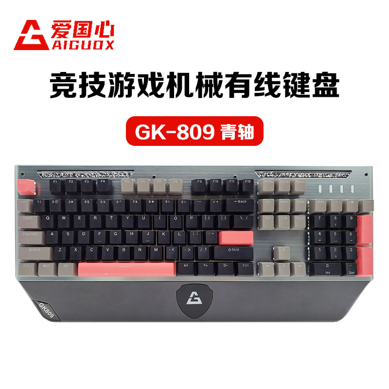 爱国心 GK-809(黑+灰+红) 青轴 竞技游戏机械有线键盘