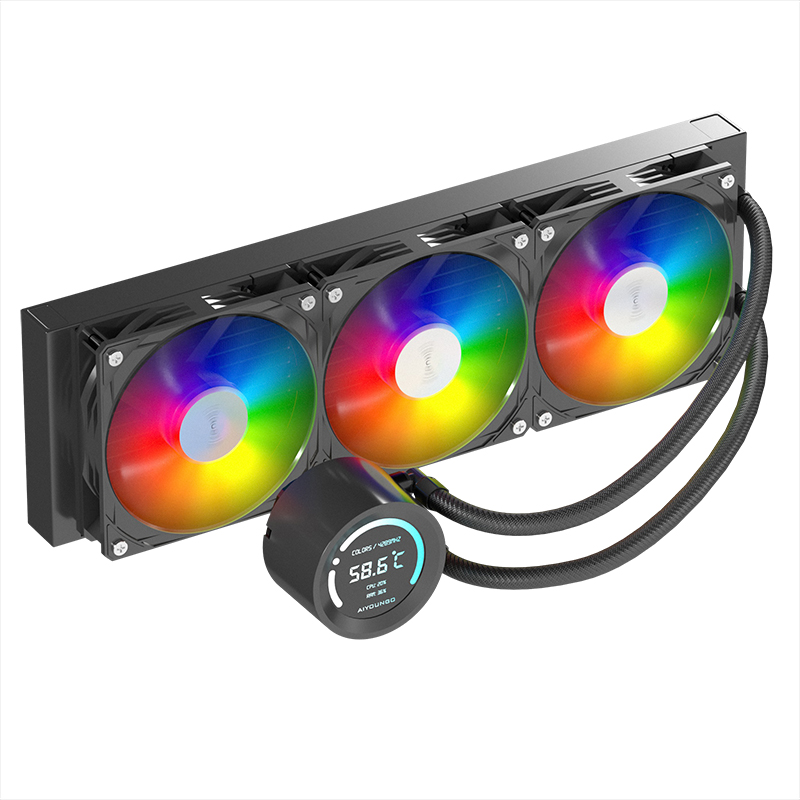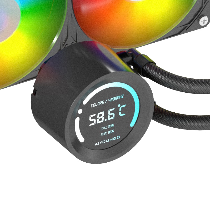 爱国者(aigo)冰魄SX360 ARGB版 黑色 数显屏一体式CPU水冷散热器(多平台扣具/PWM风扇/加厚冷排/陶瓷水泵)