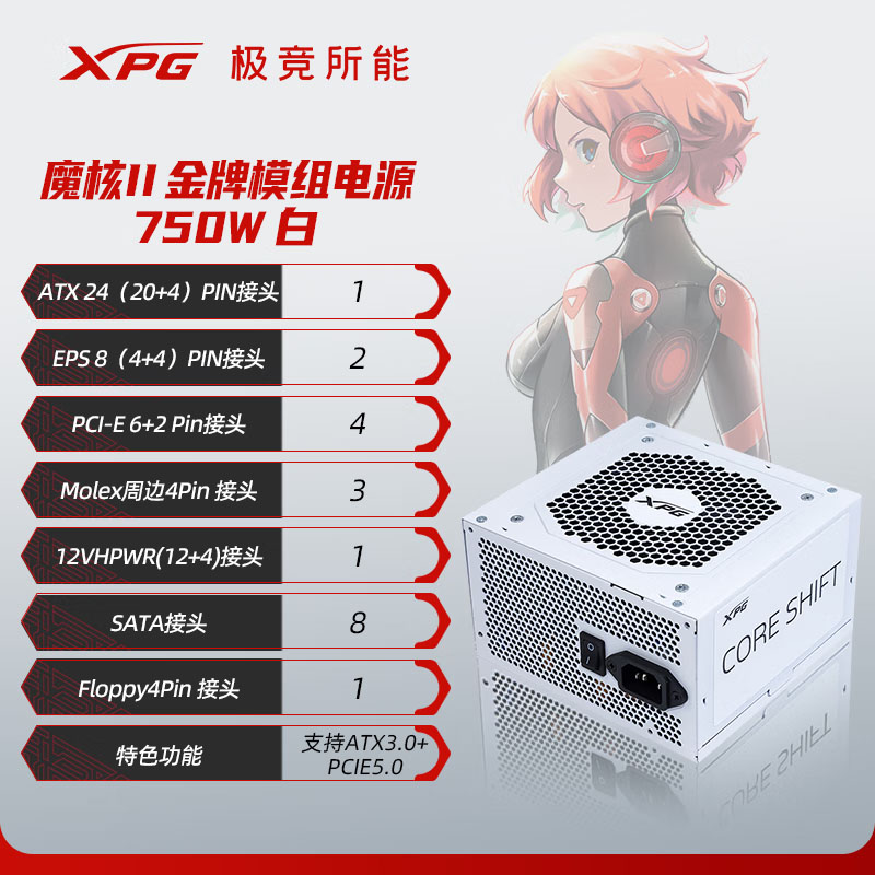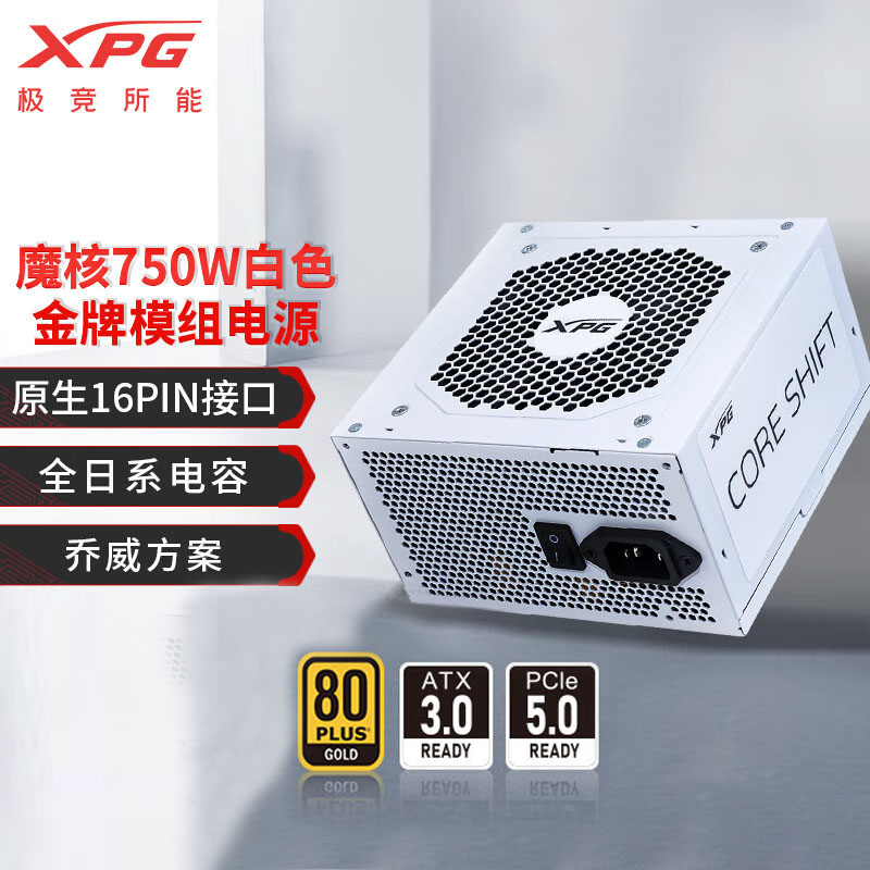 威刚(ADATA)XPG魔核II 750W 白【ATX3.0】电源金牌全模组全日系电容台式电脑主机游戏电竞白金效能智能温控