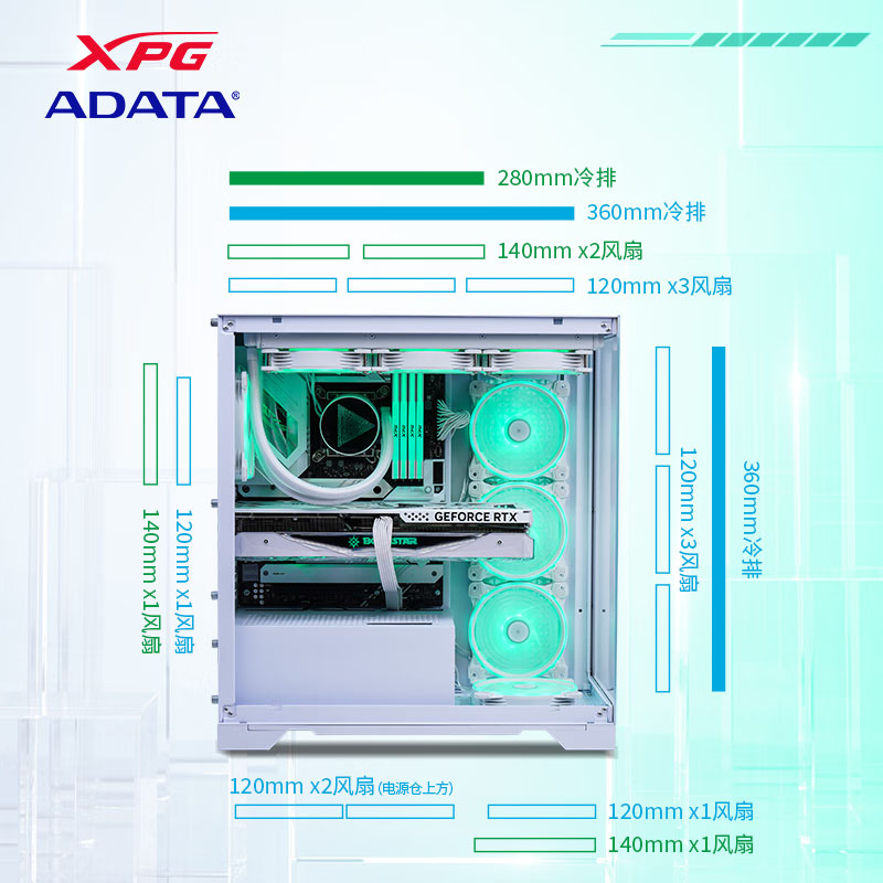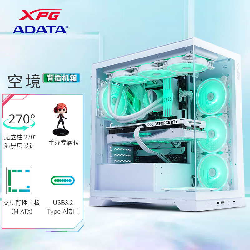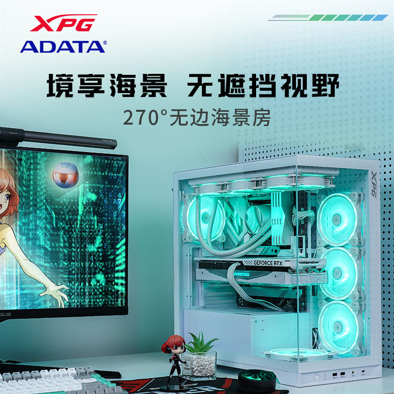 威刚(ADATA)XPG空境 超白玻版 ATX海景房机箱台式机 支持360水冷 兼容MATX背插主板前置C口