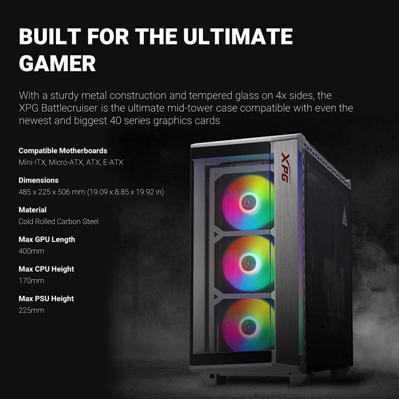 威刚(ADATA)XPG 战巡舰机壳中塔式 ARGB灯效 ATX PC 游戏机箱主机4毫米钢化玻璃侧面 白色 ARGB灯效