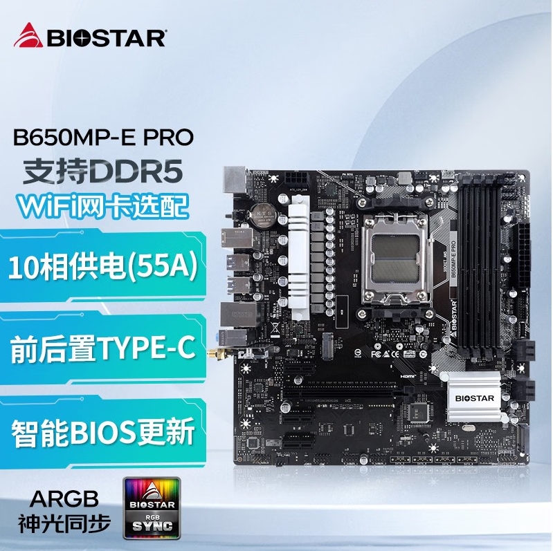 映泰(BIOSTAR)B650MP-E PRO电脑主板 WiFi6 支持DDR5支持AMD CPU AM5 7500F/7800X3D/7700X/7600X
