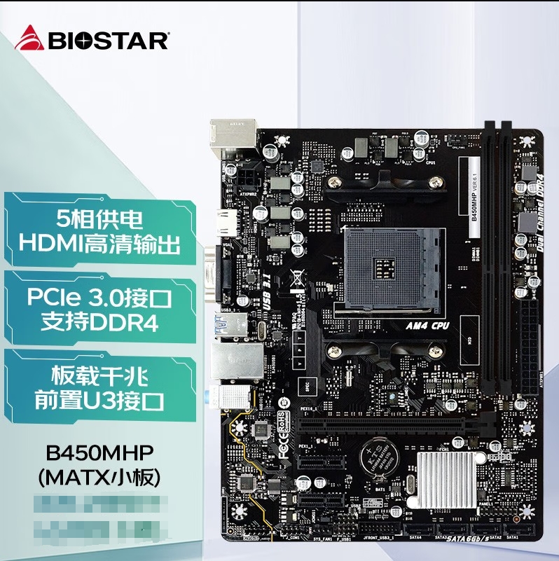 映泰(BIOSTAR)B450MHP主板支持4600G/5600G/5600X5700G(AMD B450/Socket AM4