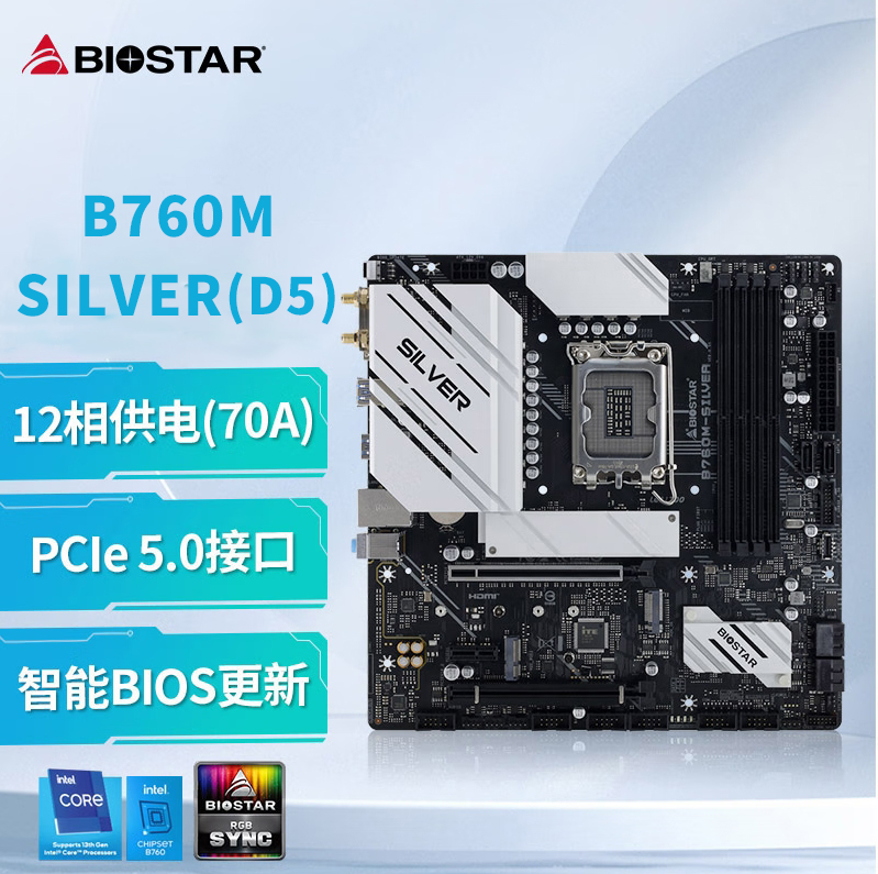 映泰(BIOSTAR)B760M-SILVER主板 WiFi6网卡 支持DDR5 CPU 13900K/13700K/13600
