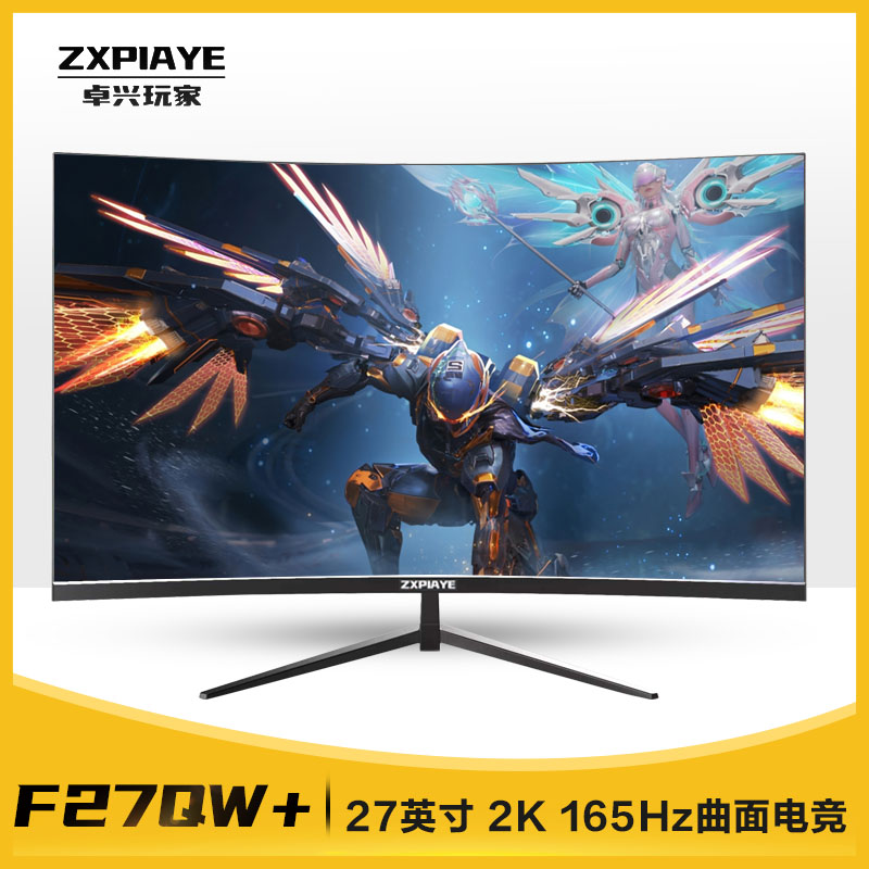 卓兴玩家 F27QW+ 27英寸 2K 165Hz高清曲面电竞显示器 1500R曲率电脑办公护眼屏幕娱乐音影