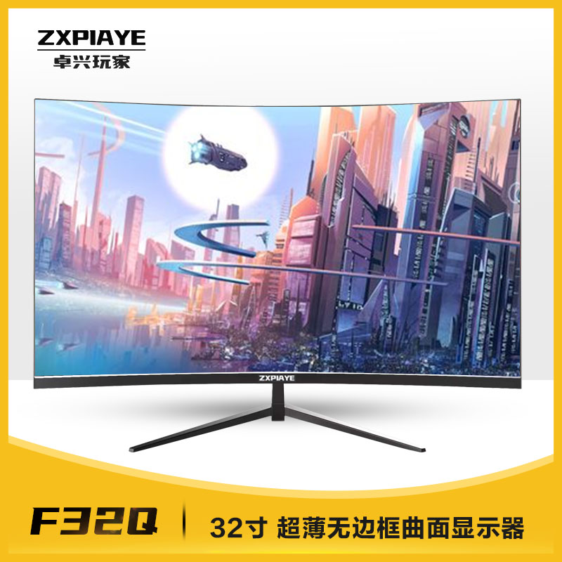 卓兴玩家 F32Q 32英寸 高清曲面显示器 R1500创新曲率 商用办公 低蓝光不闪屏 可壁挂 电脑显示屏
