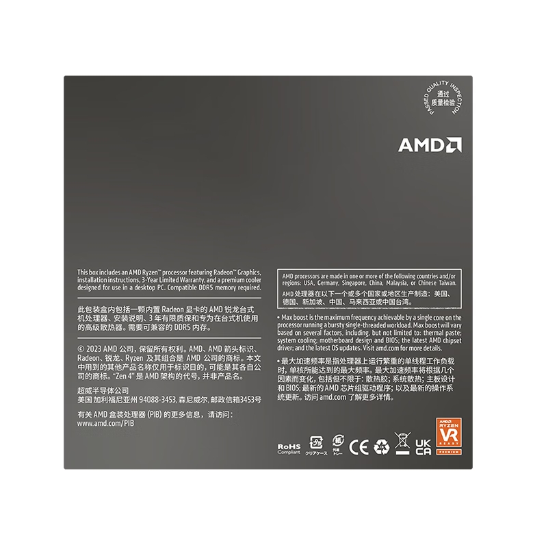 AMD 锐龙7 8700G处理器(r7) 8核16线程 加速频率至高5.1GHz 内置NPU支持AI 含集显