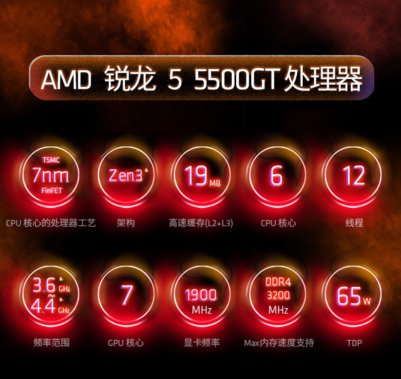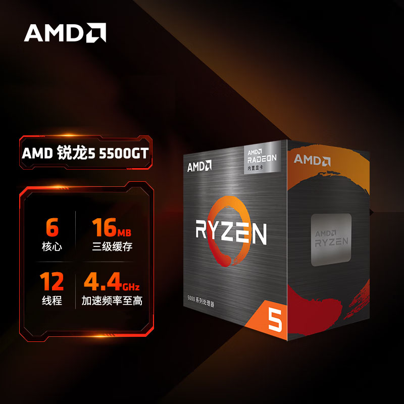 AMD 锐龙5 5500GT处理器(r5) 6核12线程 加速频率至高4.4GHz 含Radeon Graphics集显