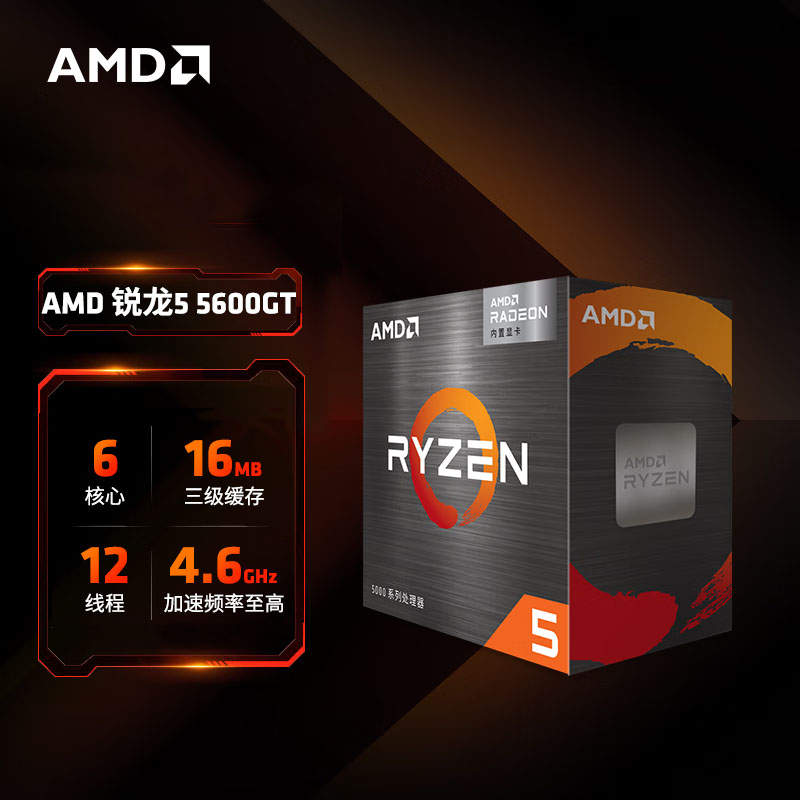 AMD 锐龙5 5600GT处理器(r5) 6核12线程 加速频率至高4.6GHz 含Radeon Graphics集显