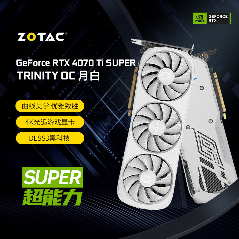 索泰(ZOTAC)4070Ti SUPER TRINITY OC 月白电竞游戏显卡 设计作图 渲染 台式电脑显卡