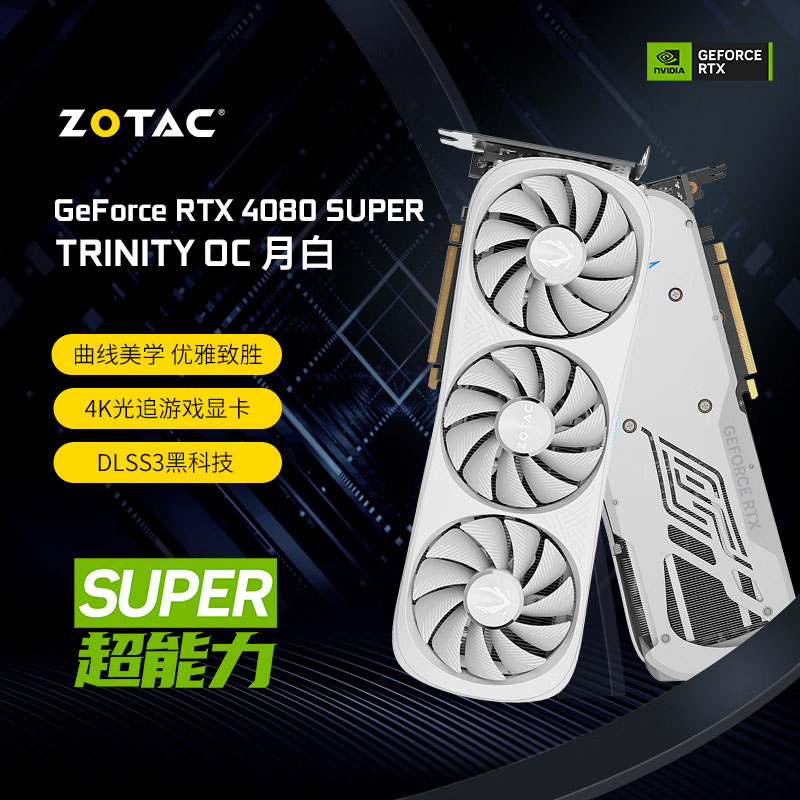 索泰(ZOTAC)RTX4080Ti SUPER TRINITY OC 月白电竞游戏显卡 设计作图 渲染 台式电脑显卡