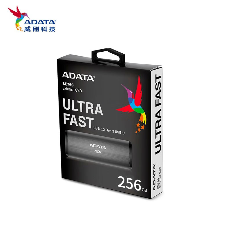 威刚NvmeSE760 256GB移动固态硬盘(PSSD)type-c外接SSD金属商务1000MB/s 金属黑色硬盘