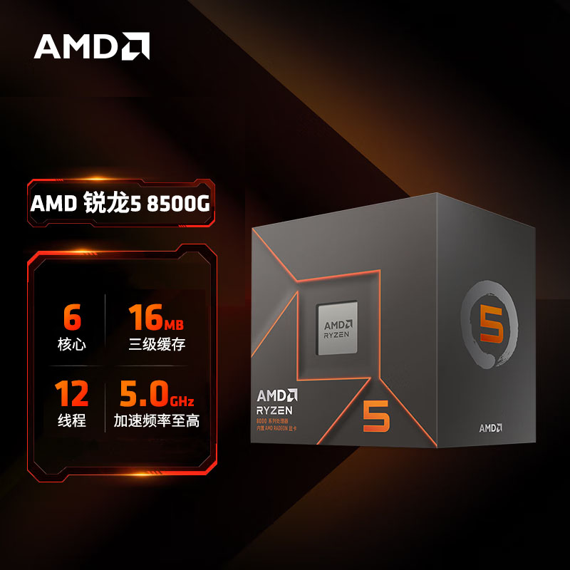 AMD 锐龙5 8500G处理器(r5) 6核12线程 加速频率至高5.0GHz 含Radeon Graphics集显