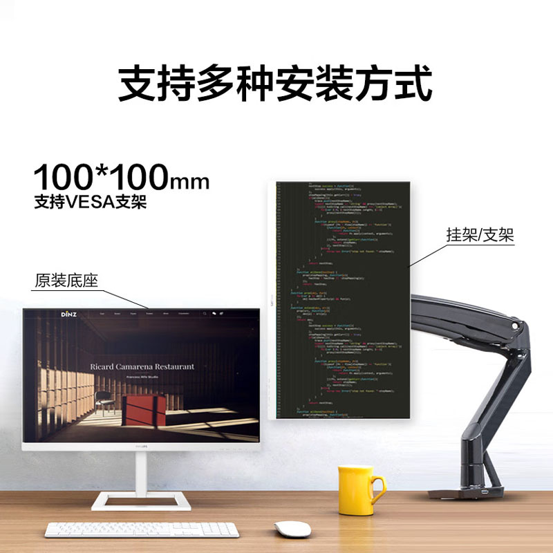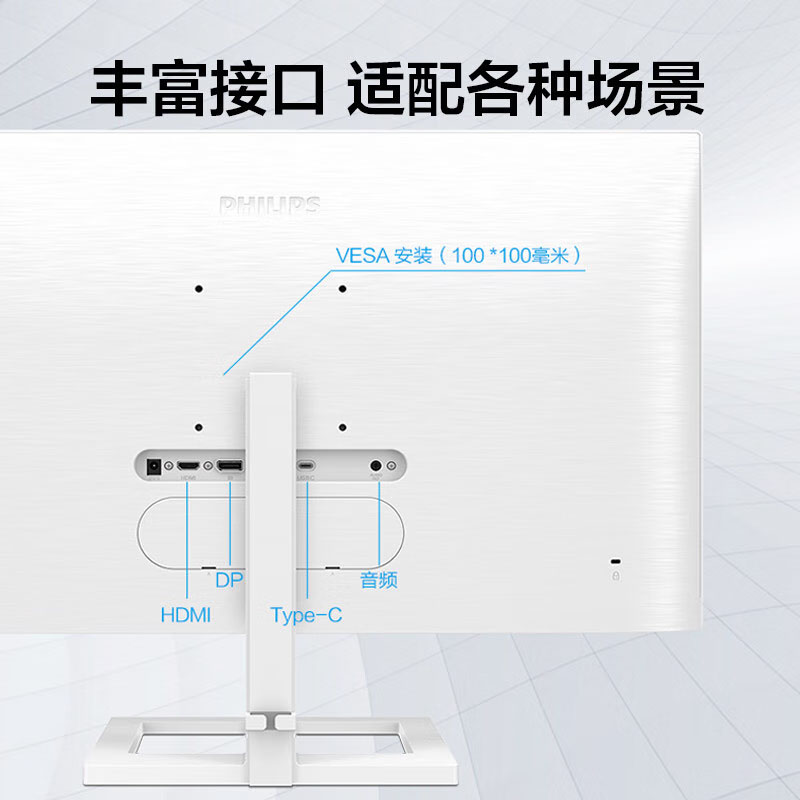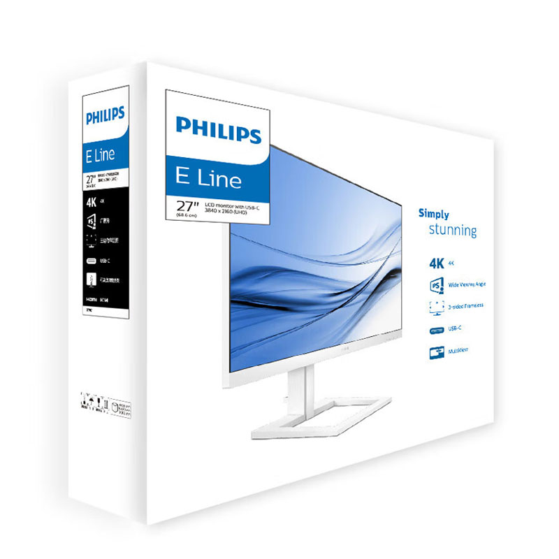 飞利浦 279E1EW(白色)27英寸 4K超清 IPS面板 Type-C投屏 10bit色深 智能分屏 电脑高清设计办公显示器