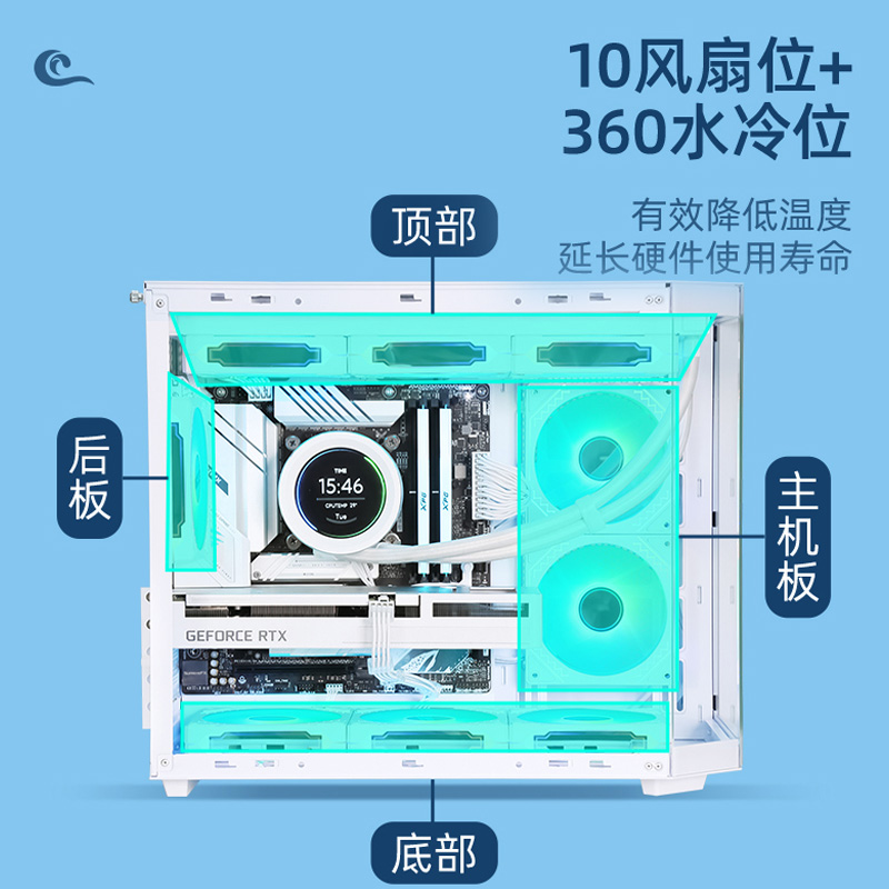 游戏风暴机箱 海岚(黑色)海景房 台式电脑游戏机箱/支持M-ATX主板/360水冷