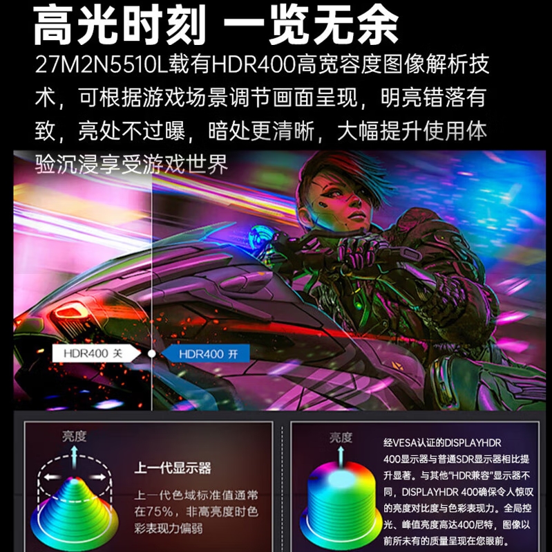 飞利浦(PHILIPS)27M2N5510L 27英寸 2K原生180Hz IPS HDR400 1ms响应 电竞显示器