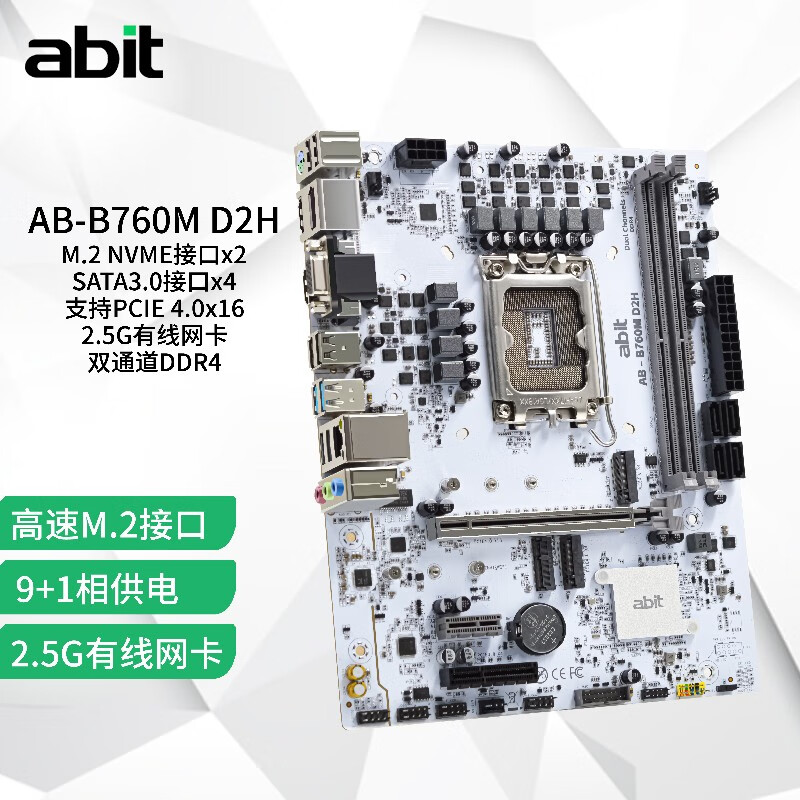 升技(abit)B760M D2H D4雪山白主板 支持12100/12400/13400F
