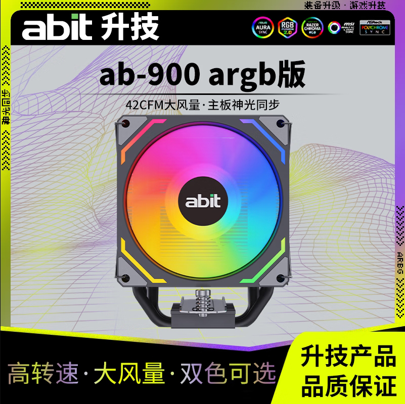 升技(abit)AB-900 ARGB版 黑色 CPU风冷散热器 (4热管/ARGB光效/PWM风扇/119mm