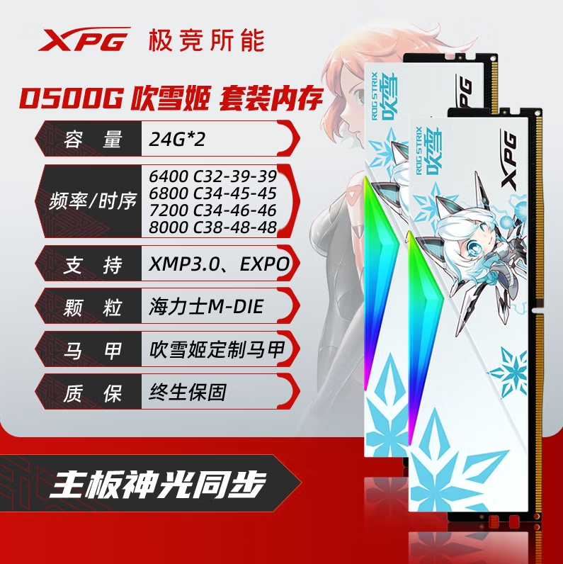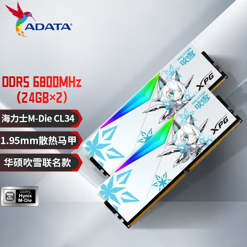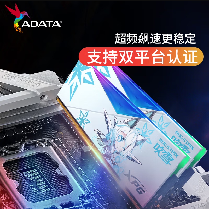 威刚龙耀DWROG STRIX RGB 吹雪 48G-6800(24GX2)灯条(釉白)DDR5 支持XMP3.0