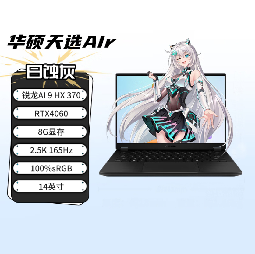 华硕天选Air 2024 FA401WV370日蚀灰 锐龙AI9HX-370 16G 1TB RTX4060-8G 电竞游戏本