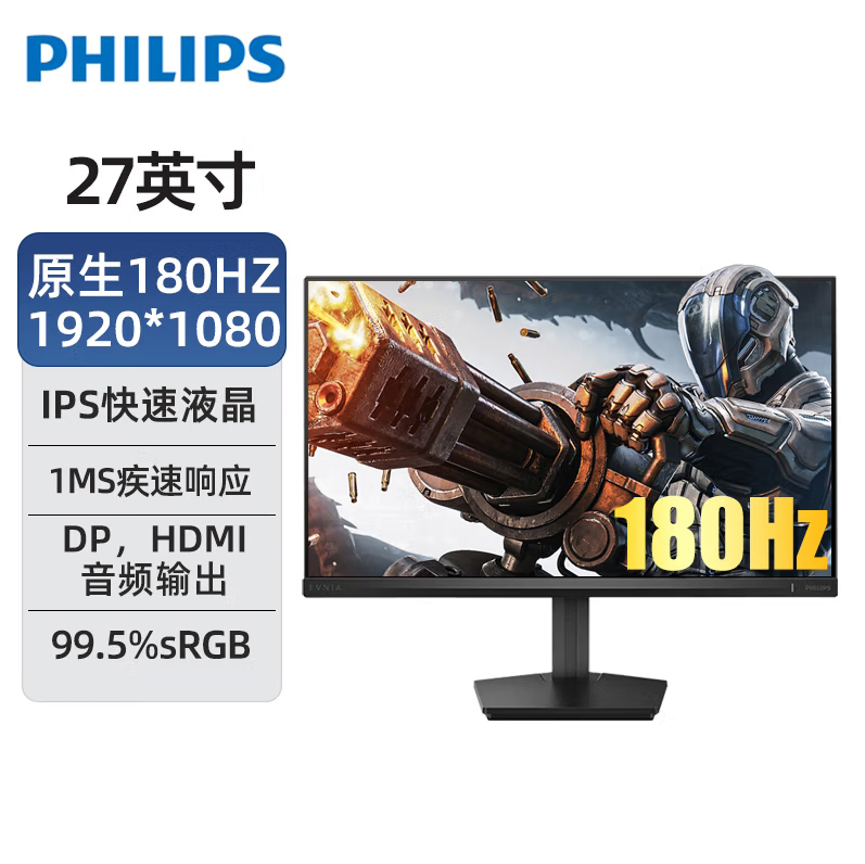 飞利浦 27M2N3200F 27英寸原生180Hz电竞游戏显示屏FastIPS快速液晶1ms(GTG) 支持HDR升降旋转显示